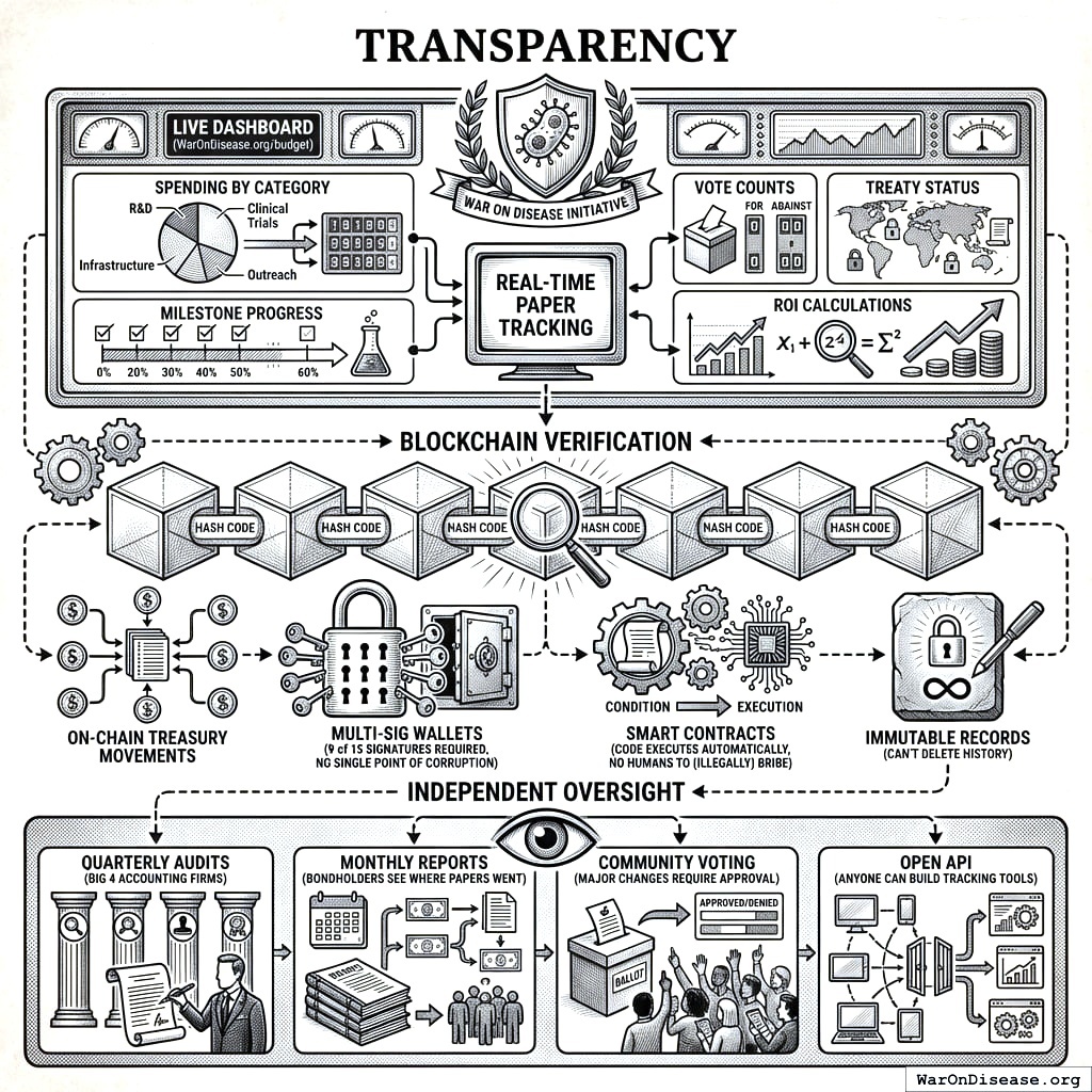 Live Transparency: Dashboard at WarOnDisease.org shows real-time cost-per-vote by cohort, conversion rates, and funds allocation.