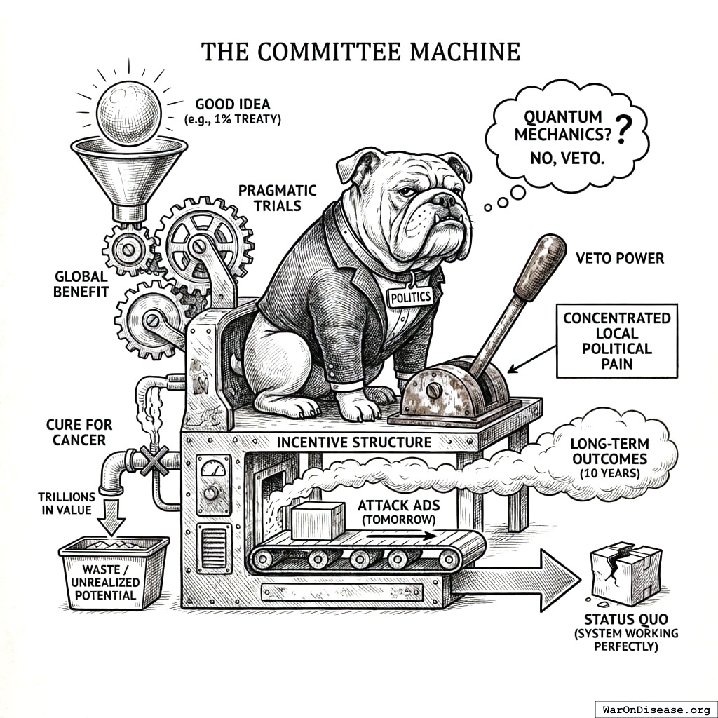 Your 1% Treaty141 isn’t constrained by physics, biology, or money. It’s constrained by politics, which is like being constrained by your dog’s opinion on quantum mechanics, except your dog can veto legislation.